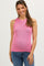 A sleeveless knit maternity top featuring crochet knit details and a rounded neckline.