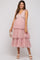 Pink Sleeveless Tiered Tie Strap Tulle Maternity Midi Dress