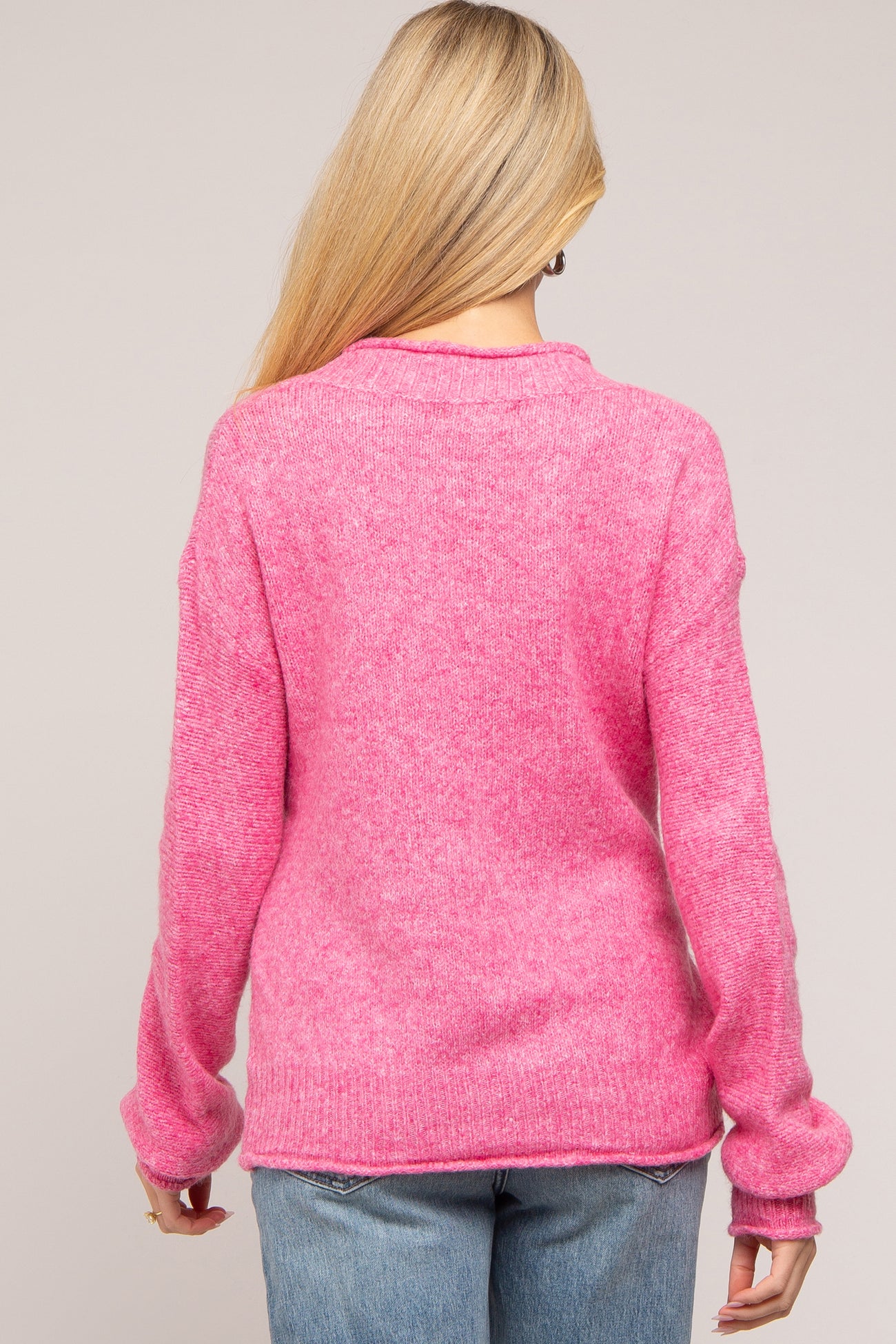 Pink Soft Knit Rolled Hem Maternity Sweater