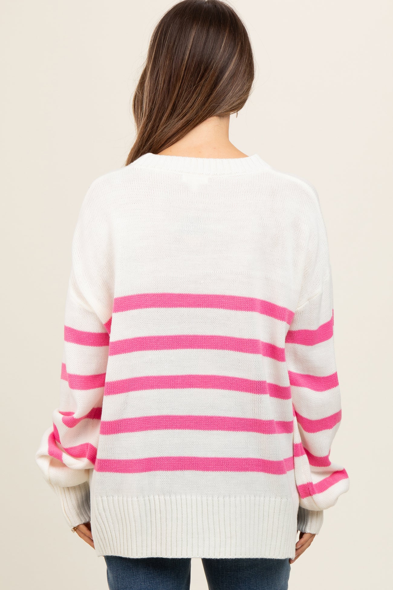 Pink Striped Oversized Side Slit Maternity Sweater
