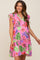 A floral print maternity dress with a v-neckline, flutter sleeves and tiered body.