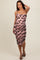 Pink Velvet Floral Ruched Mesh Maternity Midi Dress