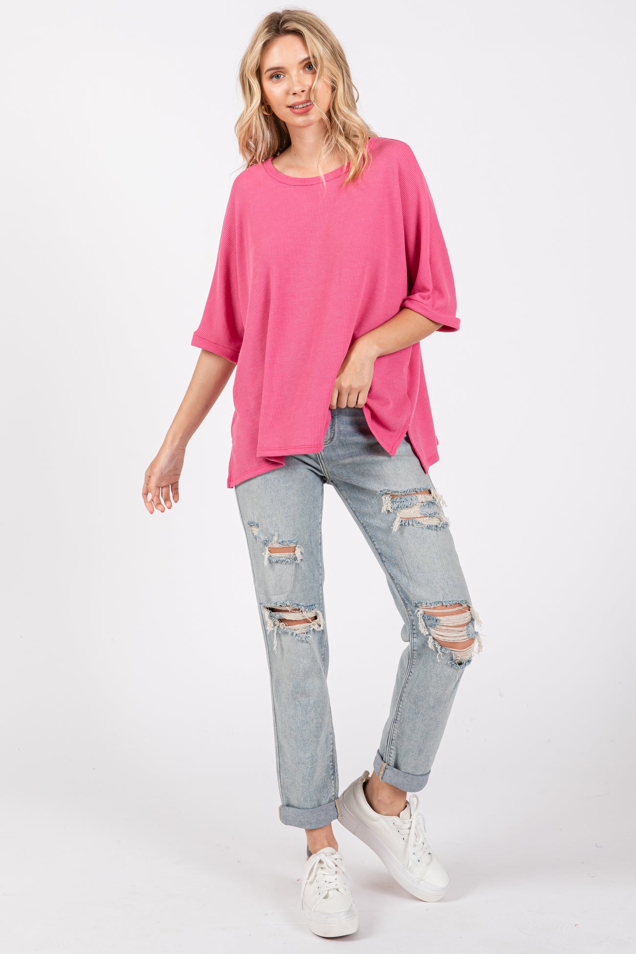 Pink Waffle Knit Dolman Top