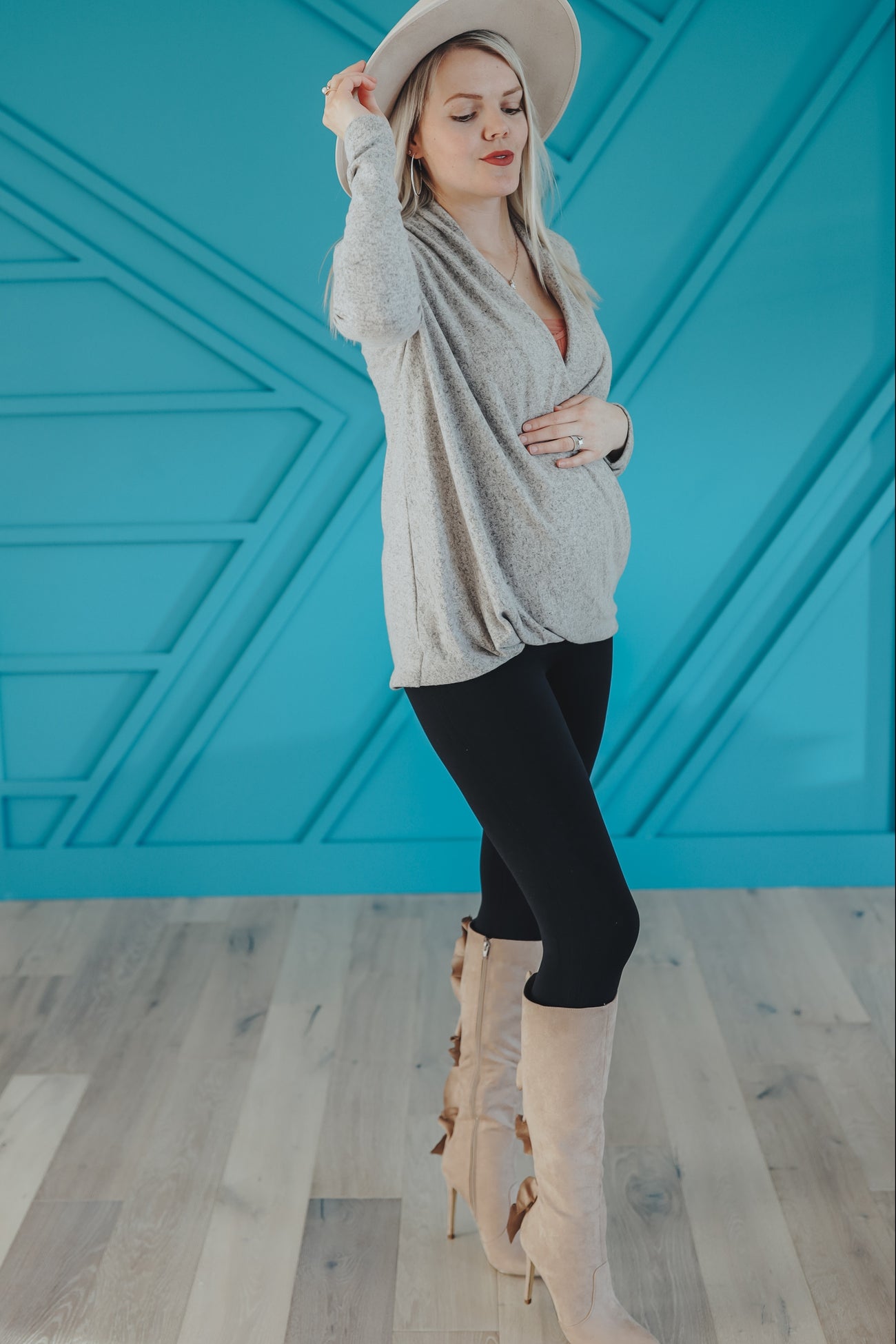 Effortlessly chic and endlessly versatile, our Knit Draped Wrap V-Neck Maternity Nursing Top is a must-have for every mom-to-be. Crafted from a soft, stretchy knit, this stylish top features a flattering draped wrap front that adapts to your changing shape, providing comfort and elegance through every trimester. The v-neckline allows for easy, discreet nursing access—perfect for on-the-go moms. Subtle ruching at the sides ensures a flattering fit from bump to post-baby. Dress it up or down for any occasion! Shop now for comfort and style during and after pregnancy.