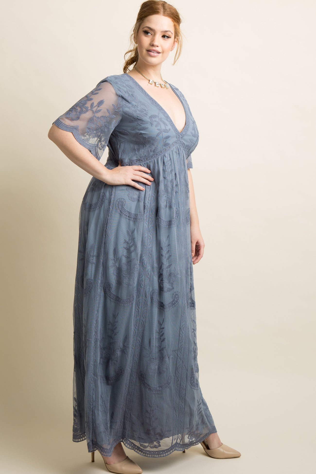 PinkBlush Blue Lace Mesh Overlay Plus Maxi Dress