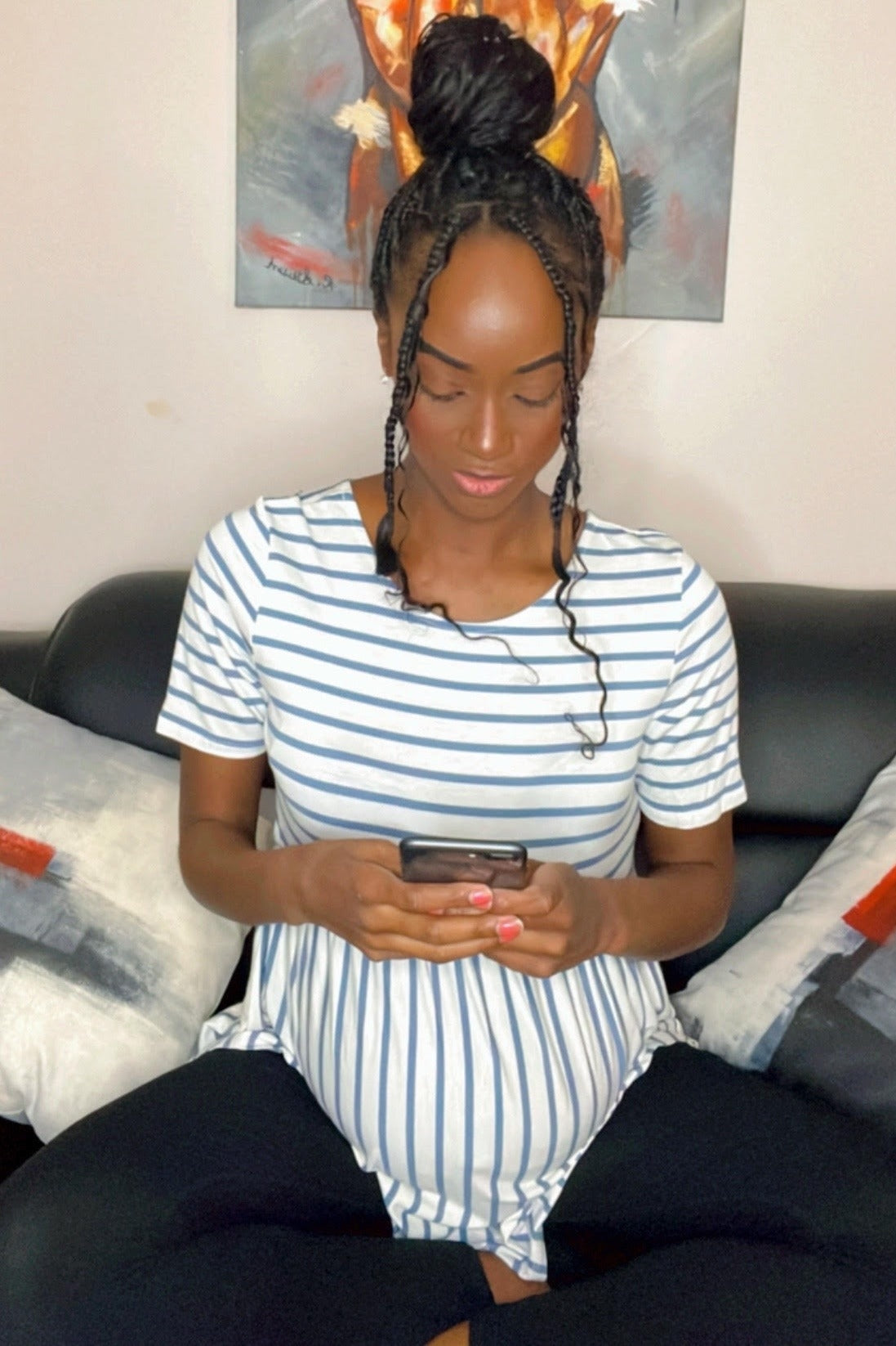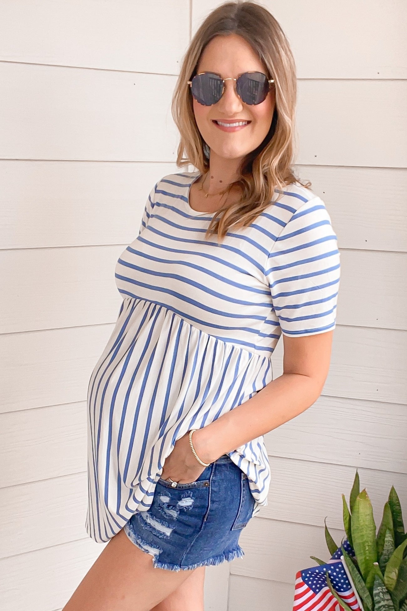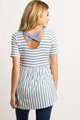 PinkBlush Blue Striped Cross Back Peplum Maternity Top