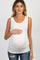 A solid, maternity tank top with a rounded neckline and ruched sides.