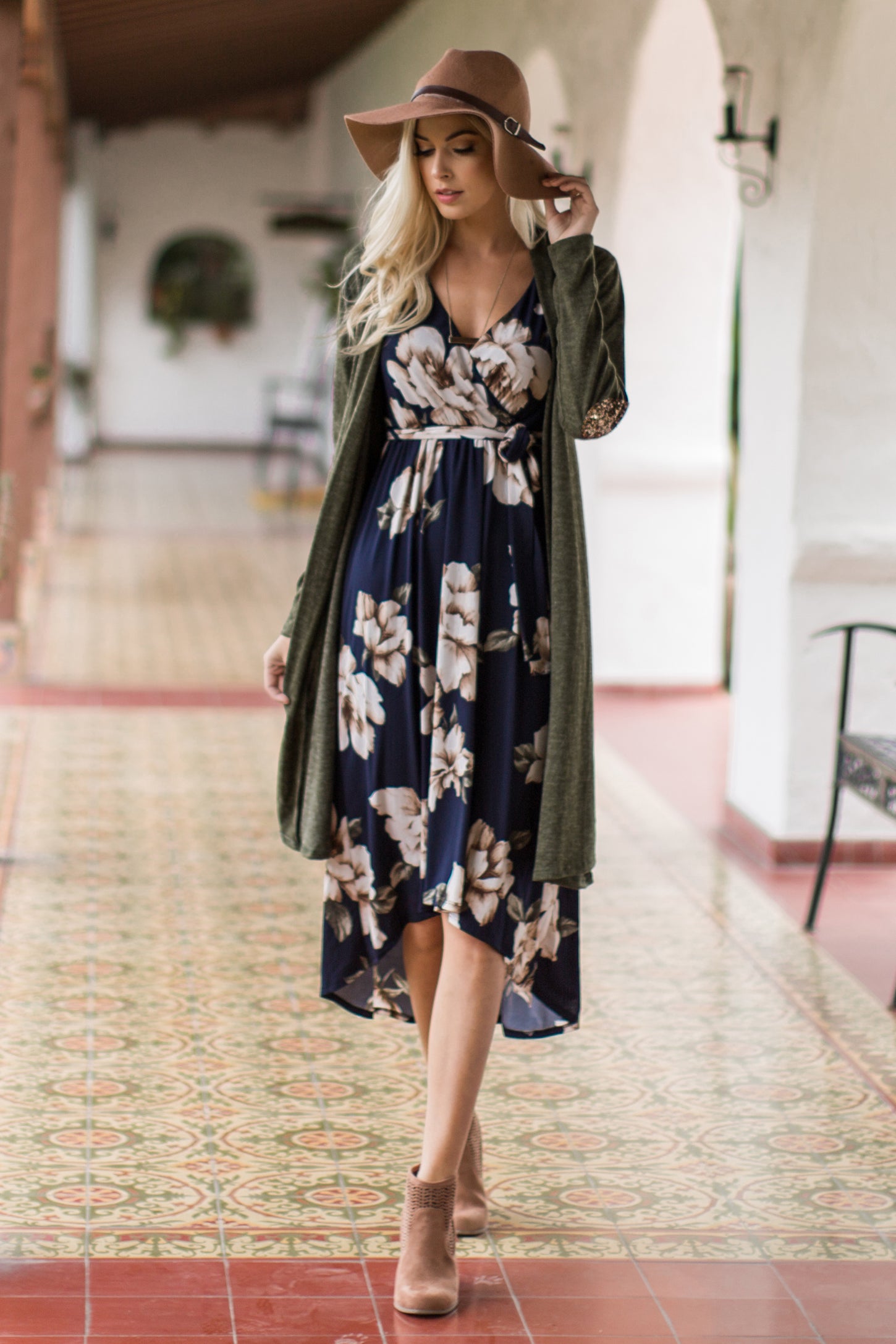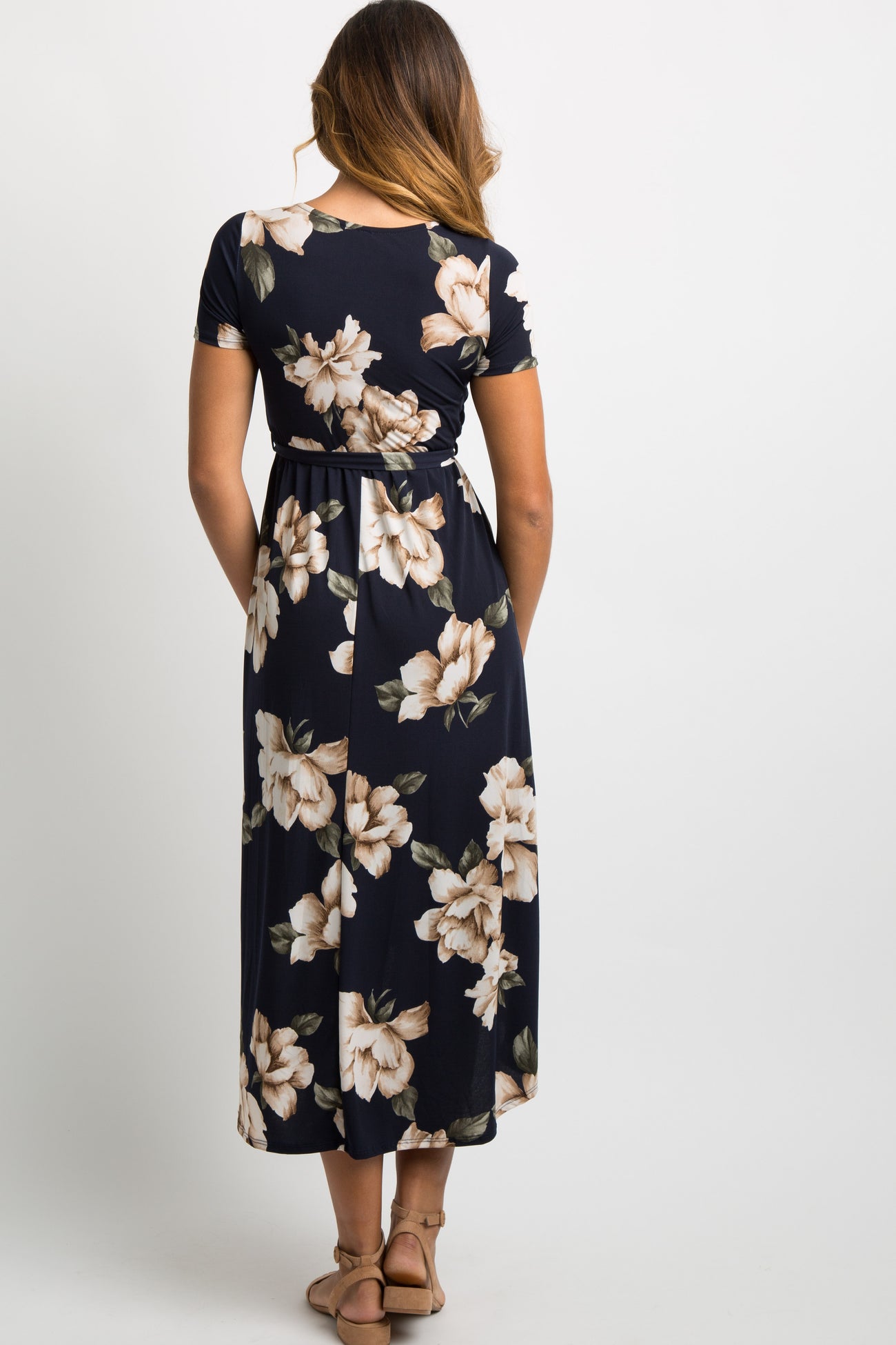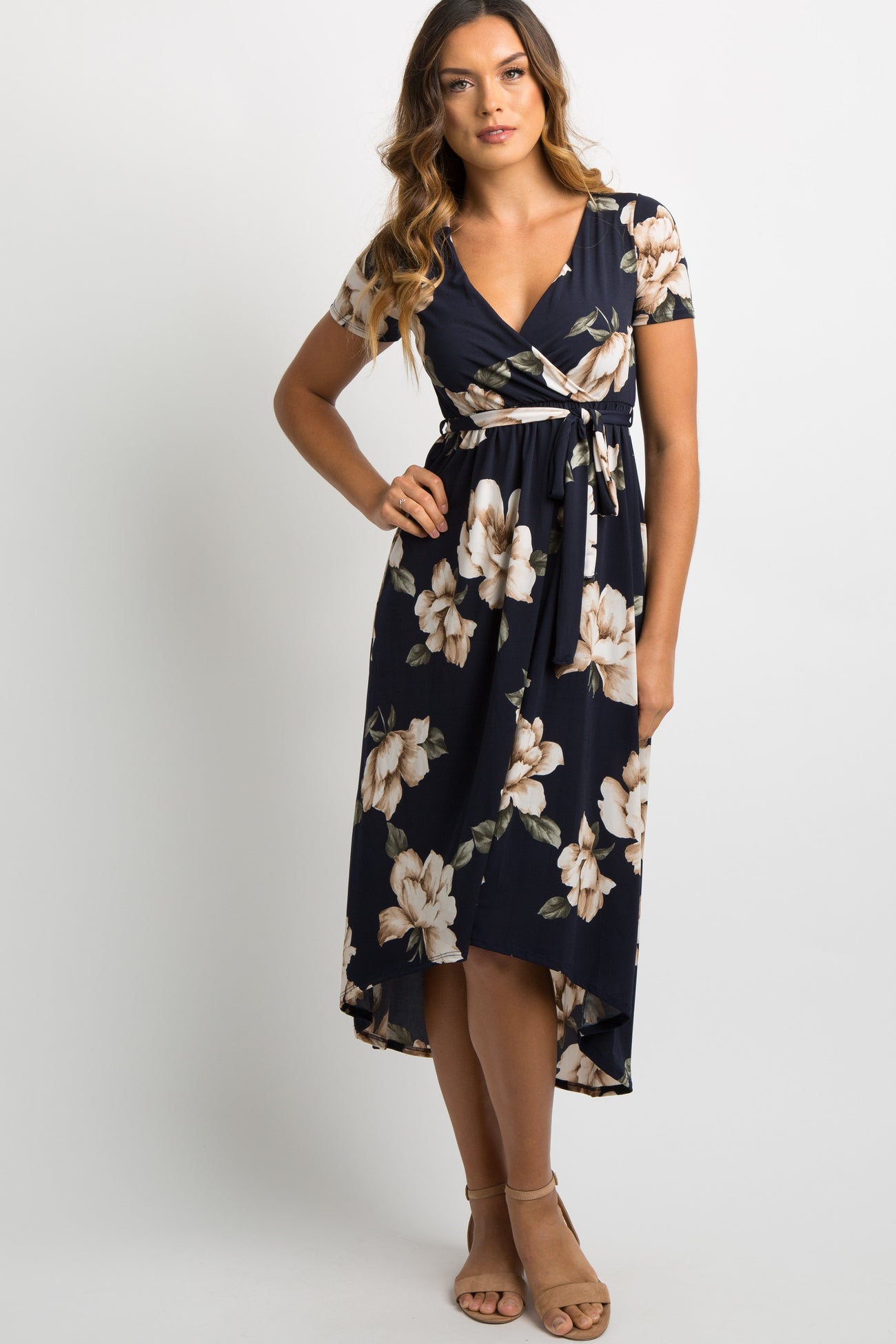 PinkBlush Navy Blue Floral Hi-Low Wrap Dress