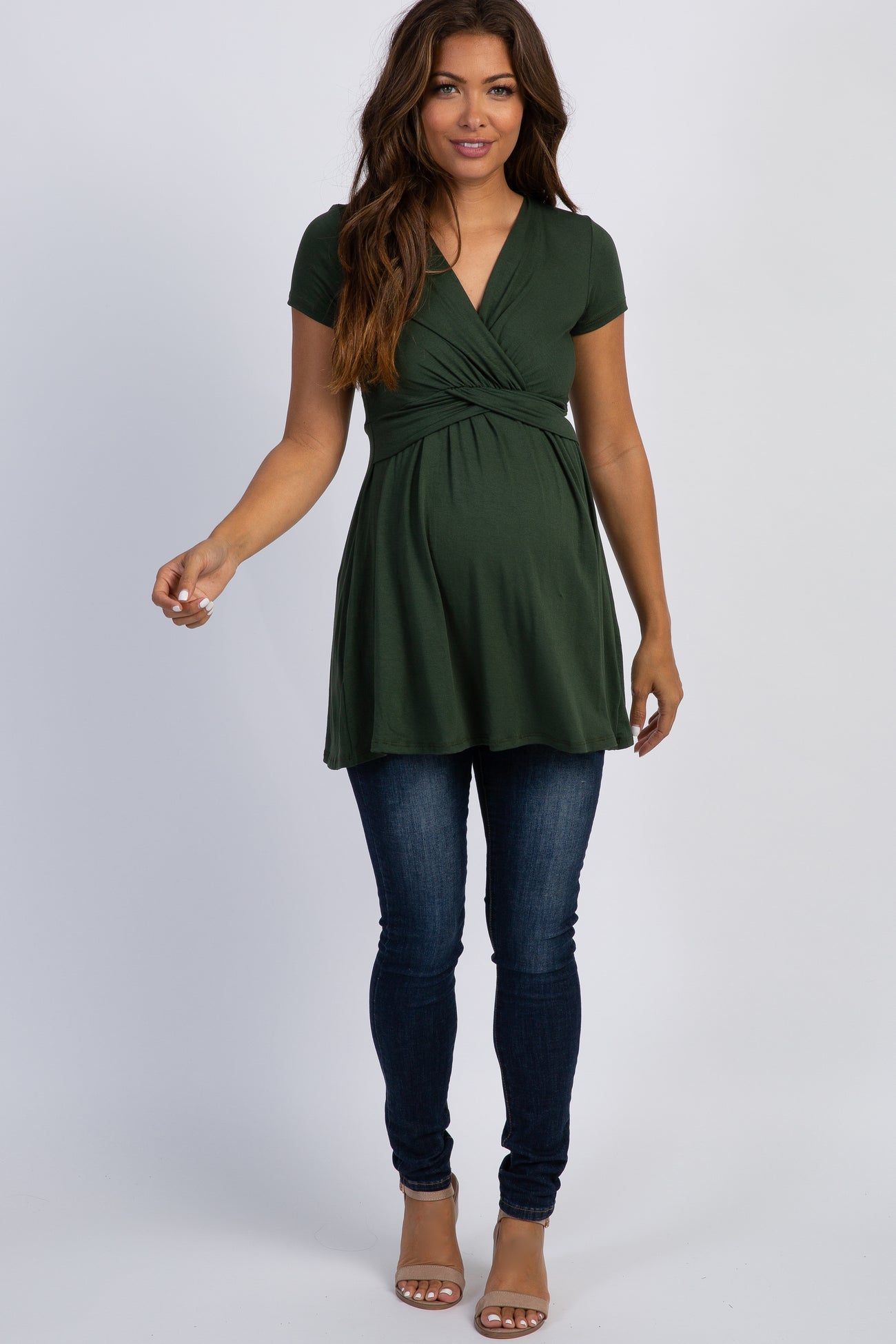 PinkBlush Olive Green Draped Front Maternity Nursing Top