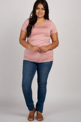 PinkBlush Pink Ruched Short Sleeve Plus Top