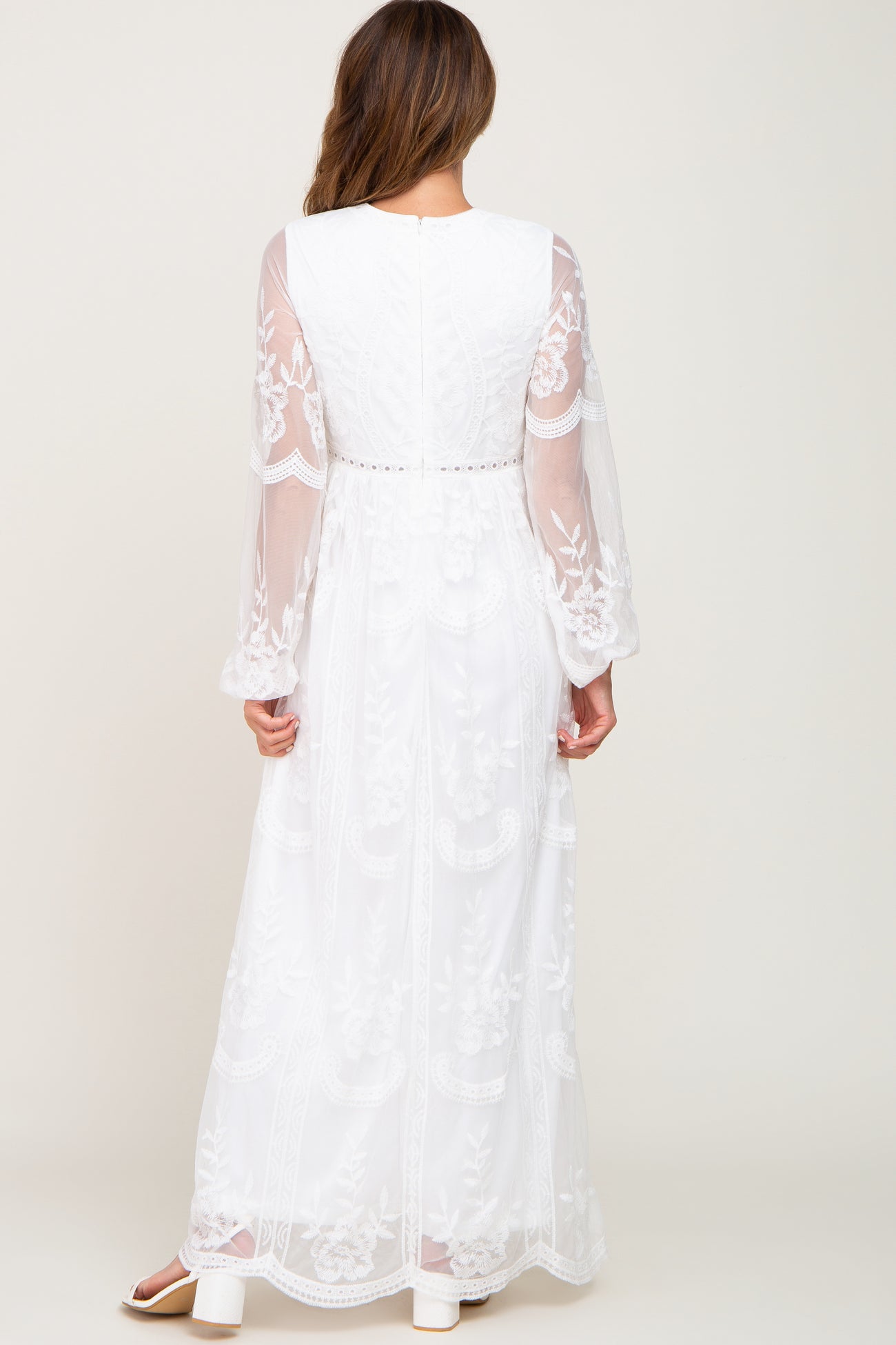 PinkBlush White Lace Mesh Overlay Long Sleeve Maxi Dress