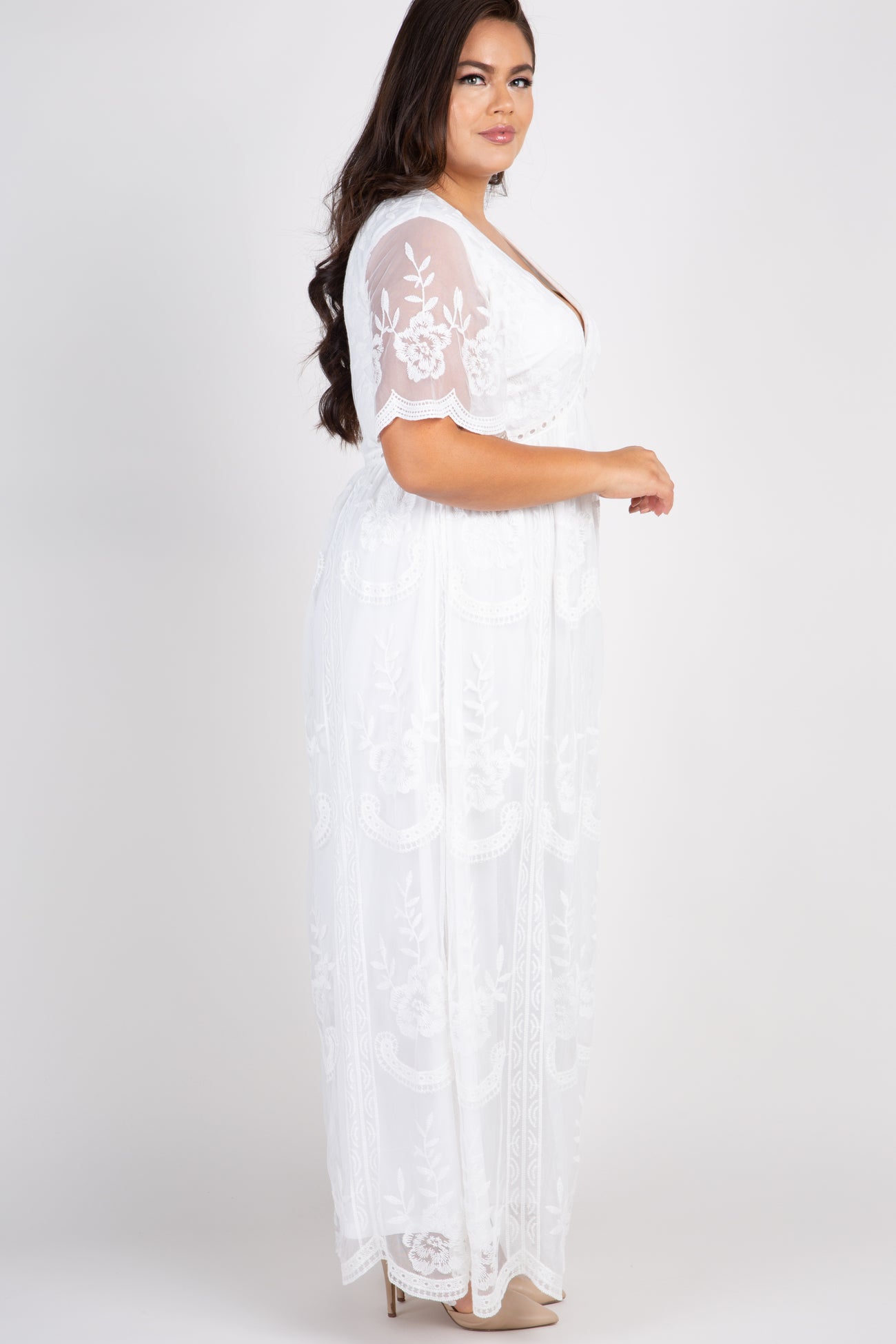 PinkBlush White Lace Mesh Overlay Plus Maxi Dress