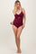 Plum Ribbed Wrap Front Drawstring Side One-Piece Swimsuit