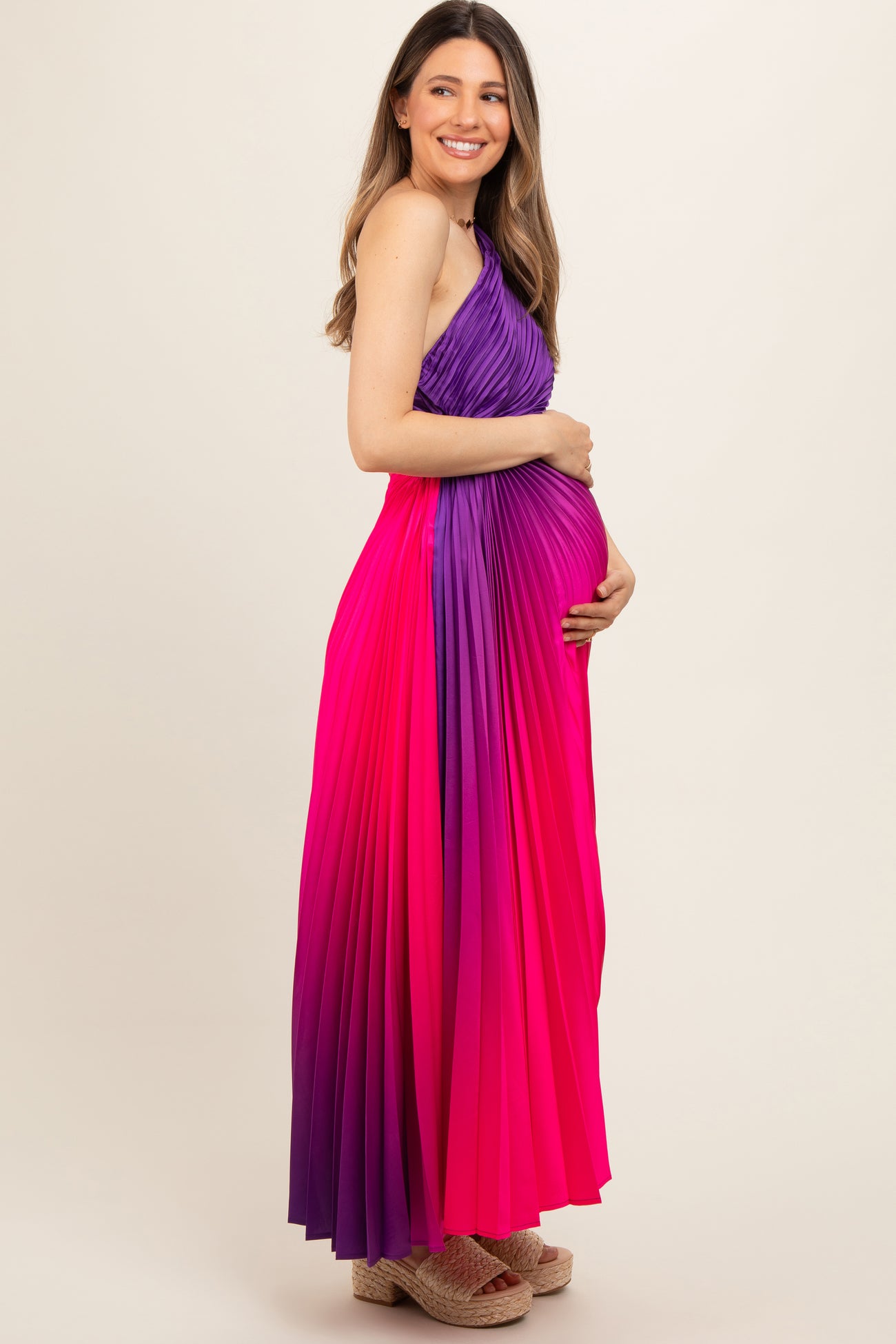 Purple Ombre Pleated Asymmetrical Maternity Maxi Dress