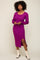 A solid thick sweater knit midi dress with a square neckline, bubble sleeves and a side slit.