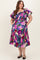 Purple Smocked Tropical Floral Maternity Plus Midi Dress
