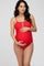 Red Back Tie Cutout One Piece Ruched Maternity Swimsuit