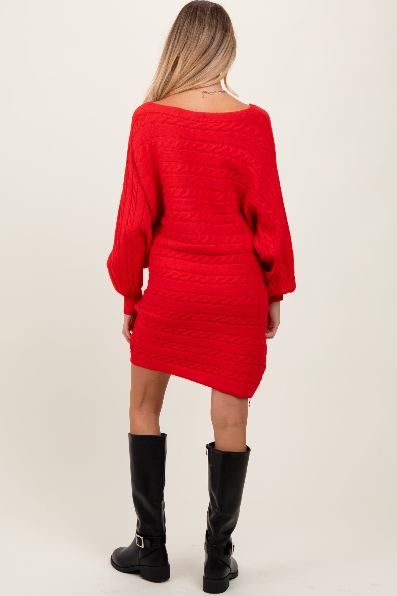 Red Cable Knit Dolman Sleeve Maternity Sweater Mini Dress