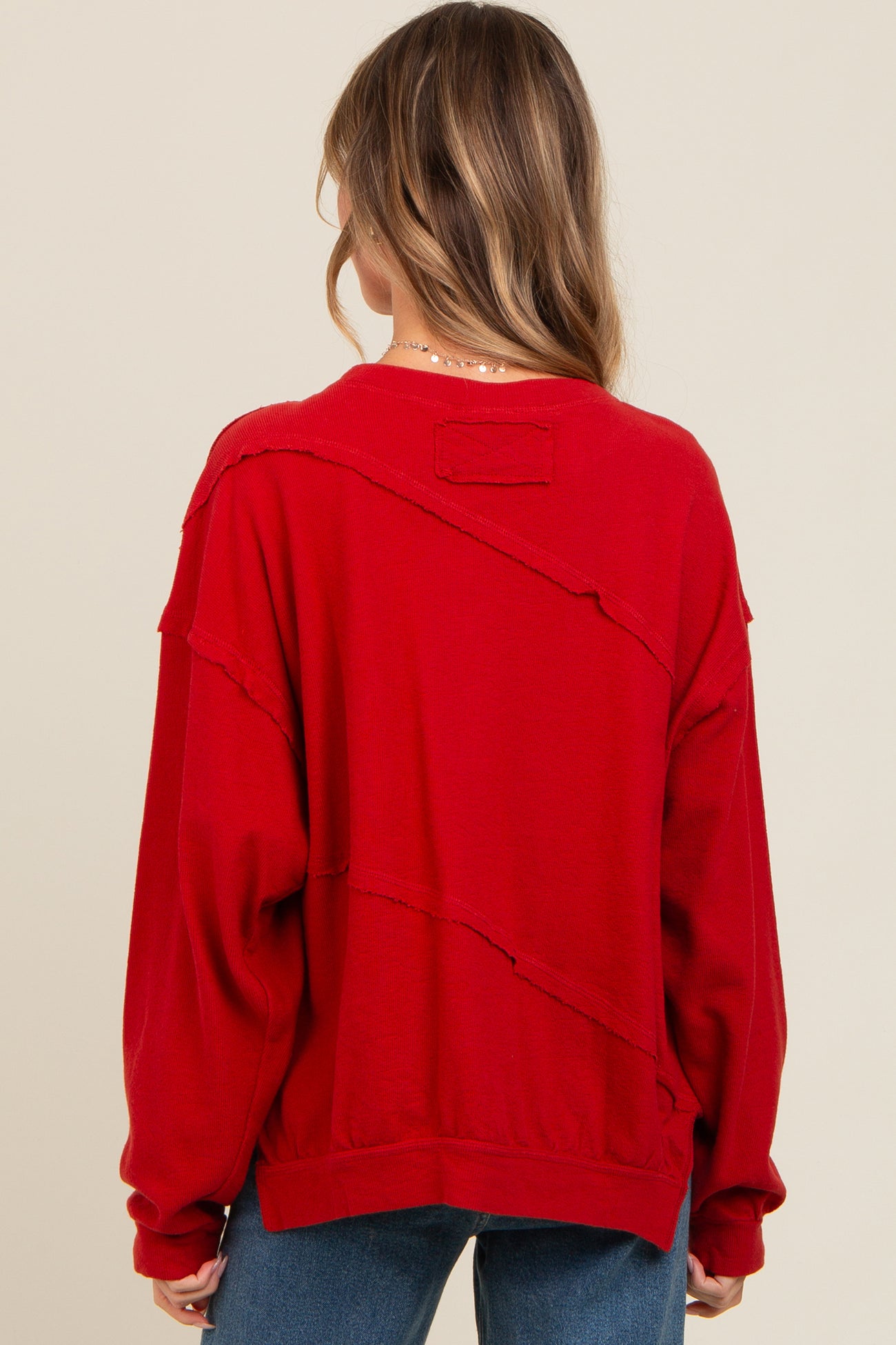 Red Exposed Seam Dolman Sleeve Sweatshirt