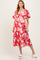 Red Floral Scallop Trim Puff Sleeve Maternity Midi Dress