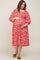 Red Floral Square Neck Smocked Short Sleeve Maternity Plus Midi Dress