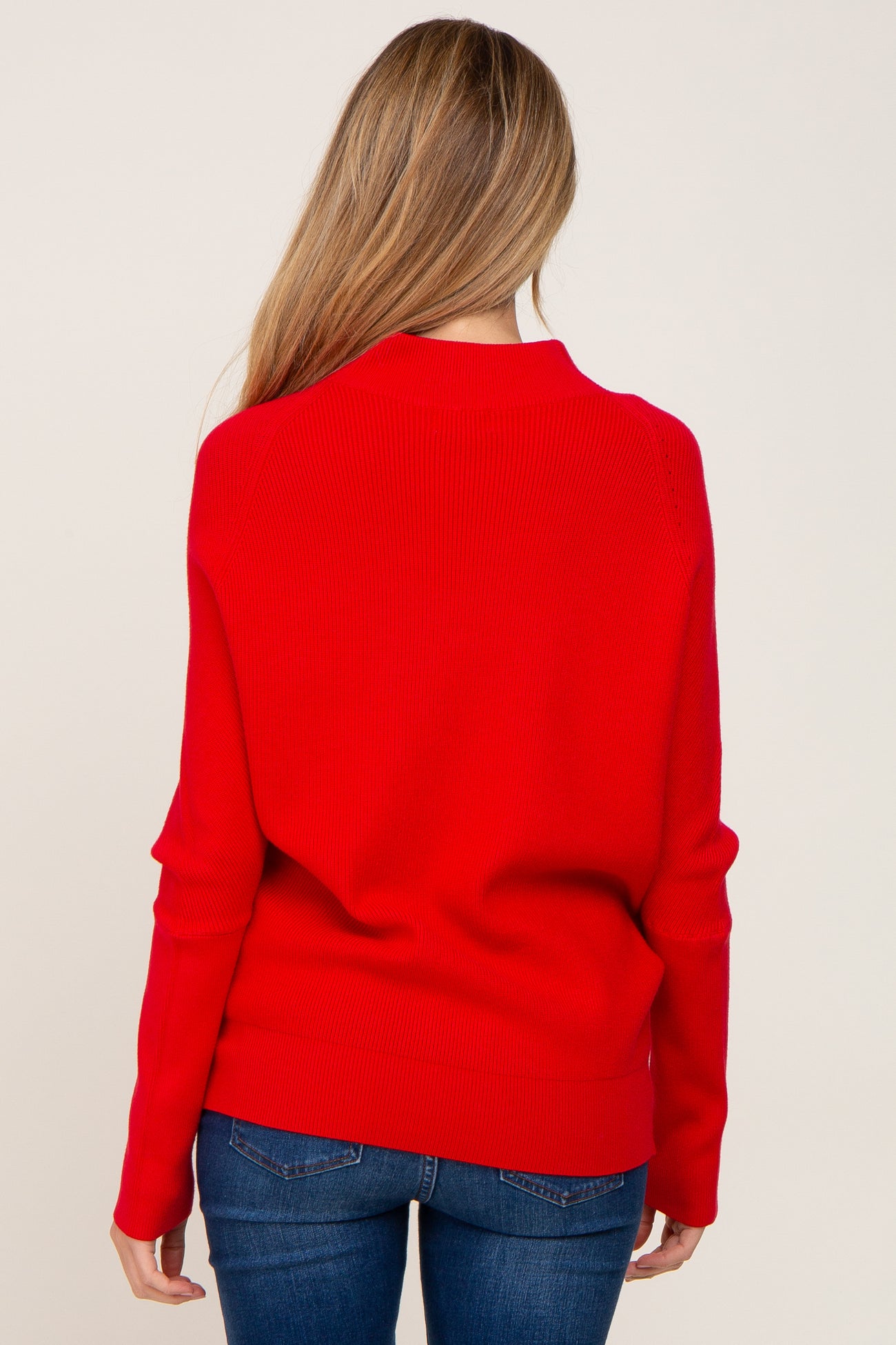 Red Funnel Neck Dolman Sleeve Maternity Sweater