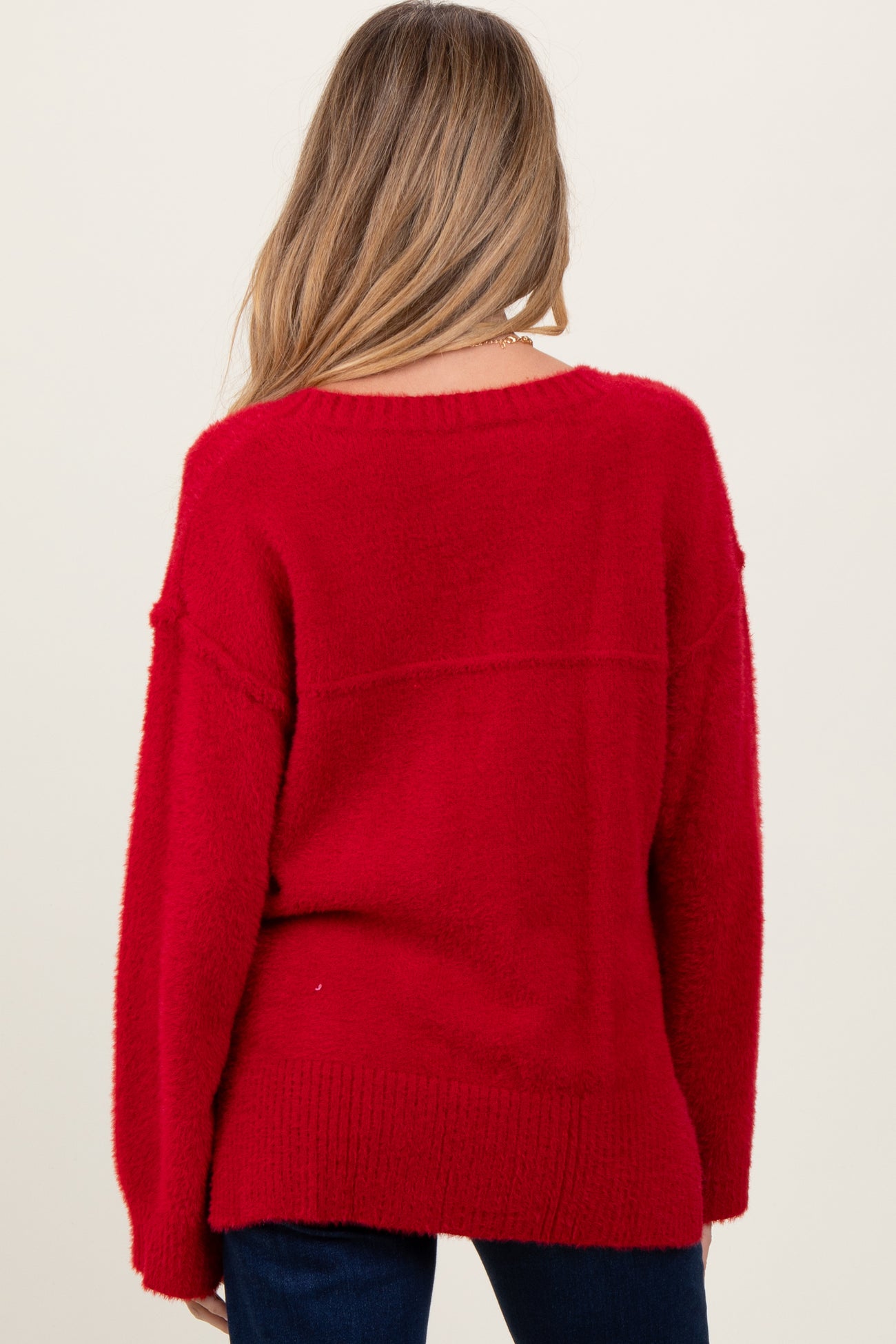 Red Fuzzy Knit Oversized Maternity Sweater