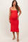 Red Knit Contrast Trim Square Neck Maternity Midi Dress