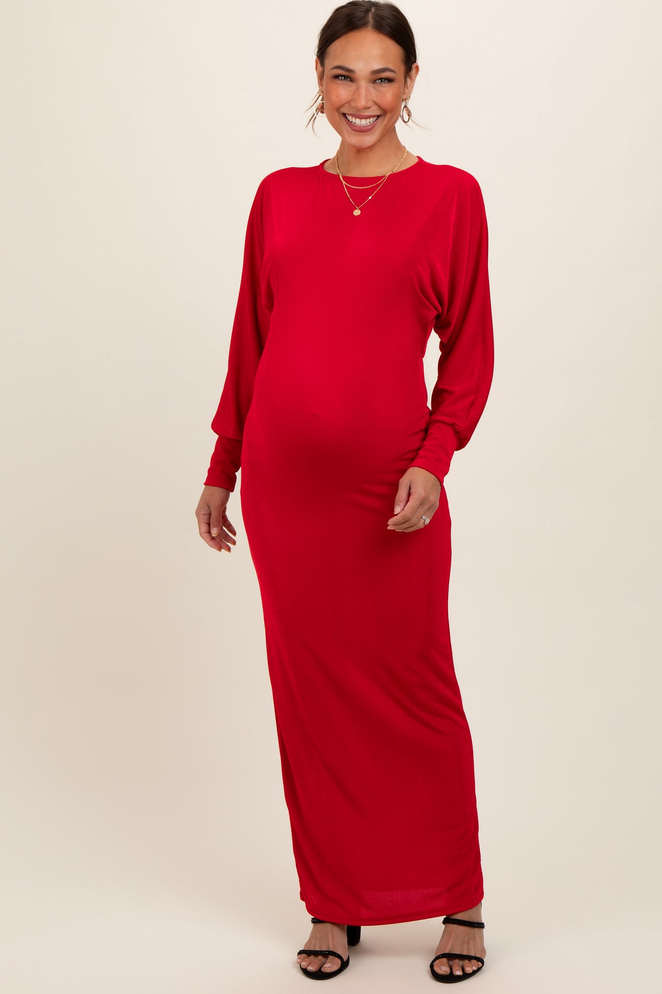 Red Long Sleeve Open Back Maternity Maxi Dress