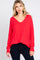 Details A solid knit sweater featuring long sleeves, side slits and a v-neckline. Content + Care
