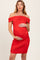 Red Off Shoulder Ruched Maternity Mini Dress