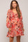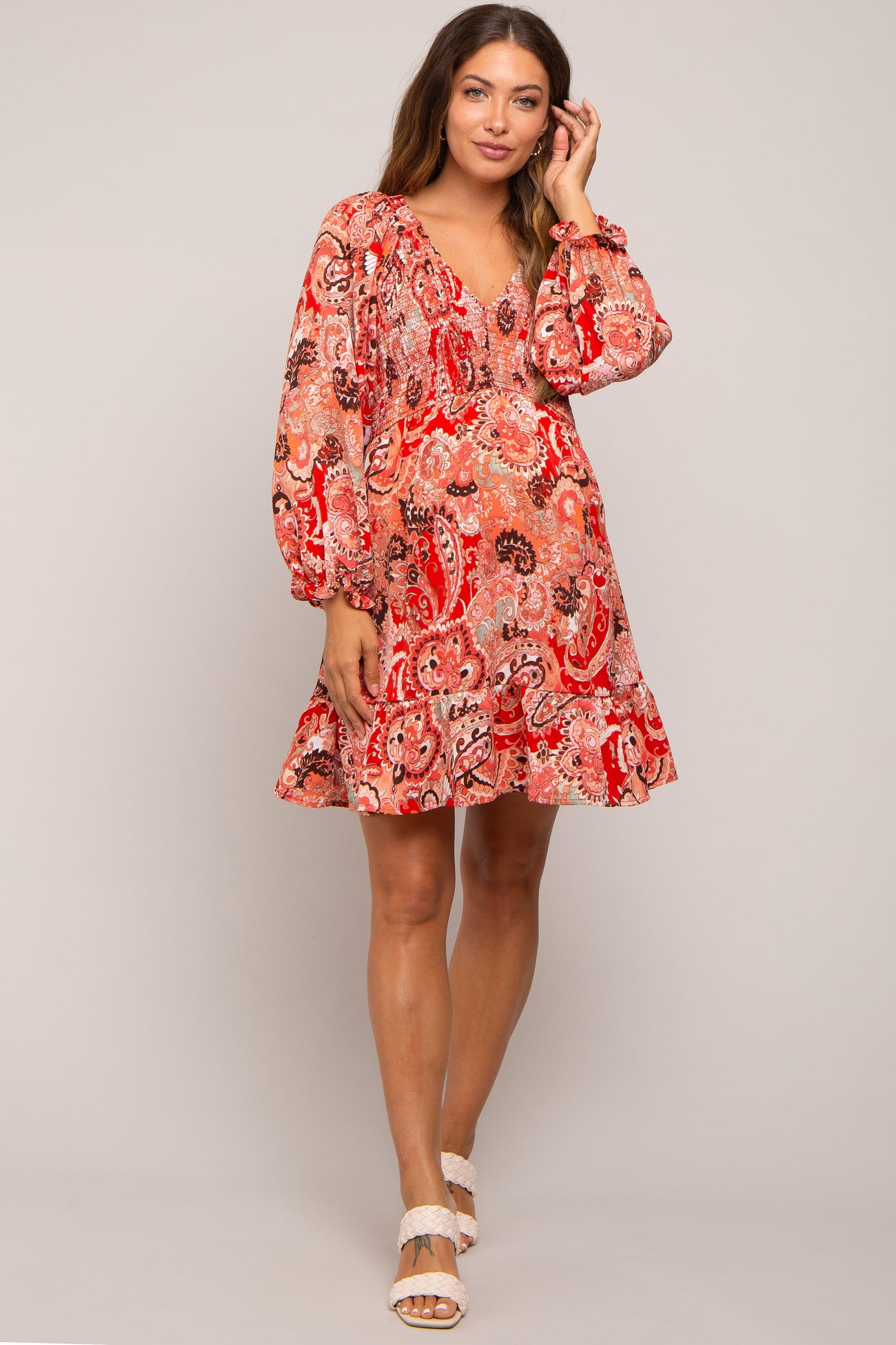 Red Paisley Smocked Long Sleeve Maternity Dress