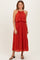 Red Pleated Woven Midi Dress