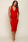 Red Ribbed Knit Fitted V-Neck Maternity Midi Dress