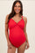 Red Ribbed Lettuce Edge V-Neck Maternity One-Piece Swimsuit