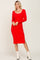 A solid ribbed midi dress featuring long puff sleeves, a side slit and a scoop neckline.
