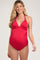 Red Ribbed Low Back Halter One-Piece Maternity Swimsuit