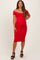 Red Ribbed Wide Neckline Fitted Maternity Midi Dress