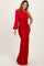 Red Ruched Mesh One Shoulder Asymmetric Maxi Dress