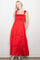 Red Satin Smocked Shoulder Tie Maxi Dress