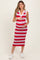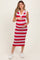 Red Striped Knit Sleeveless Polo Maternity Midi Dress