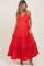 Red Swiss Dot Smocked Sleeveless Maternity Maxi Dress