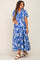 Royal Blue Floral Collared Short Sleeve Side Cutout Maternity Midi Dress