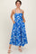 Royal Blue Floral Tie Back Cutout Midi Dress