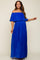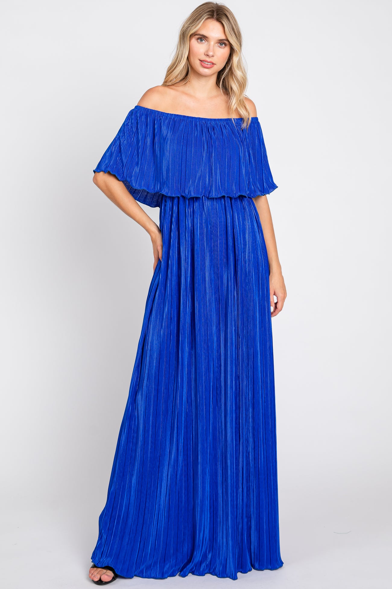 Royal Blue Pleated Plisse Ruffle Off-Shoulder Maternity Maxi Dress