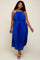 Royal Blue Pleated Sleeveless Waist Tie Plus Maxi Dress