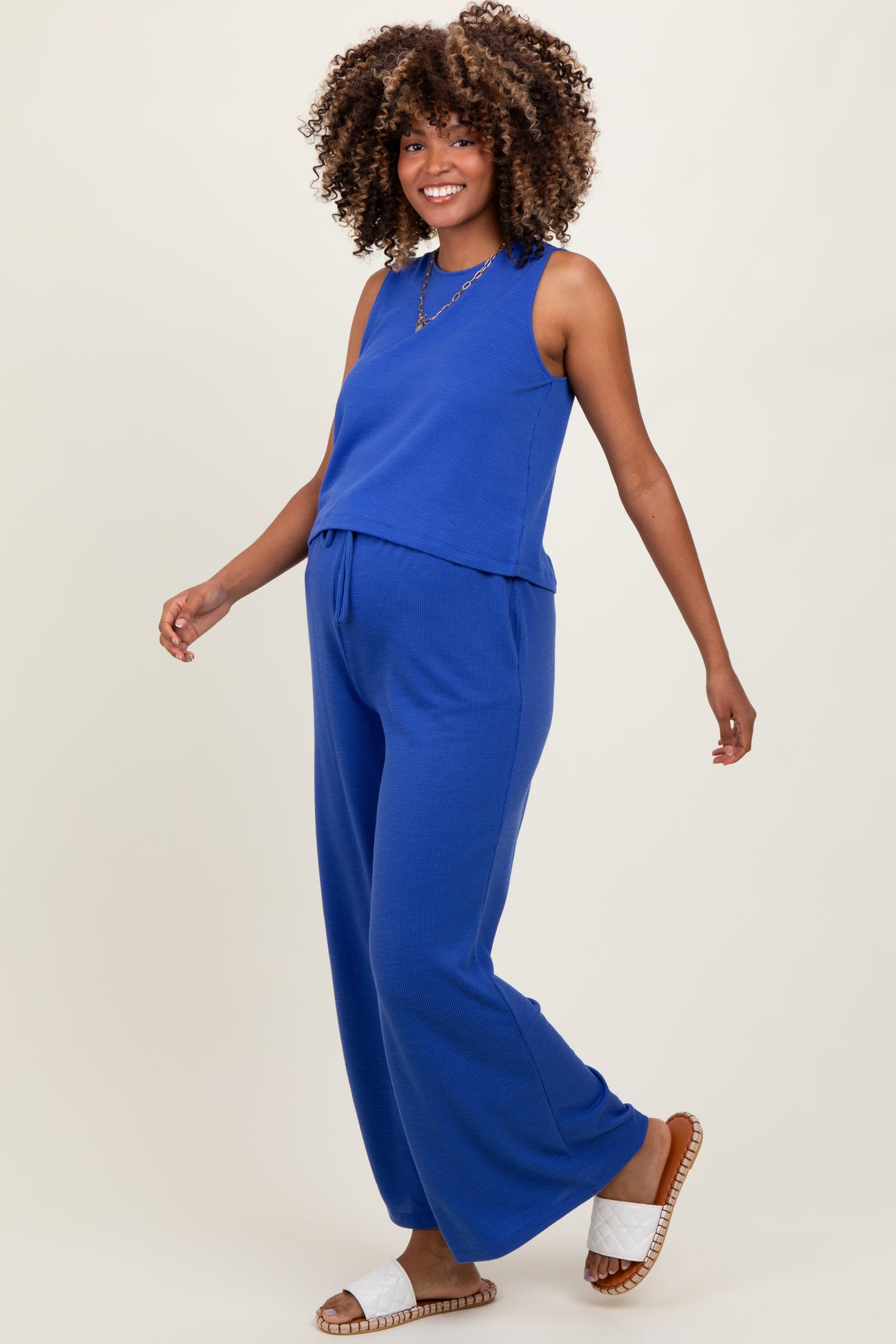 Royal Blue Sleeveless Top And Wide Leg Pants Maternity Set