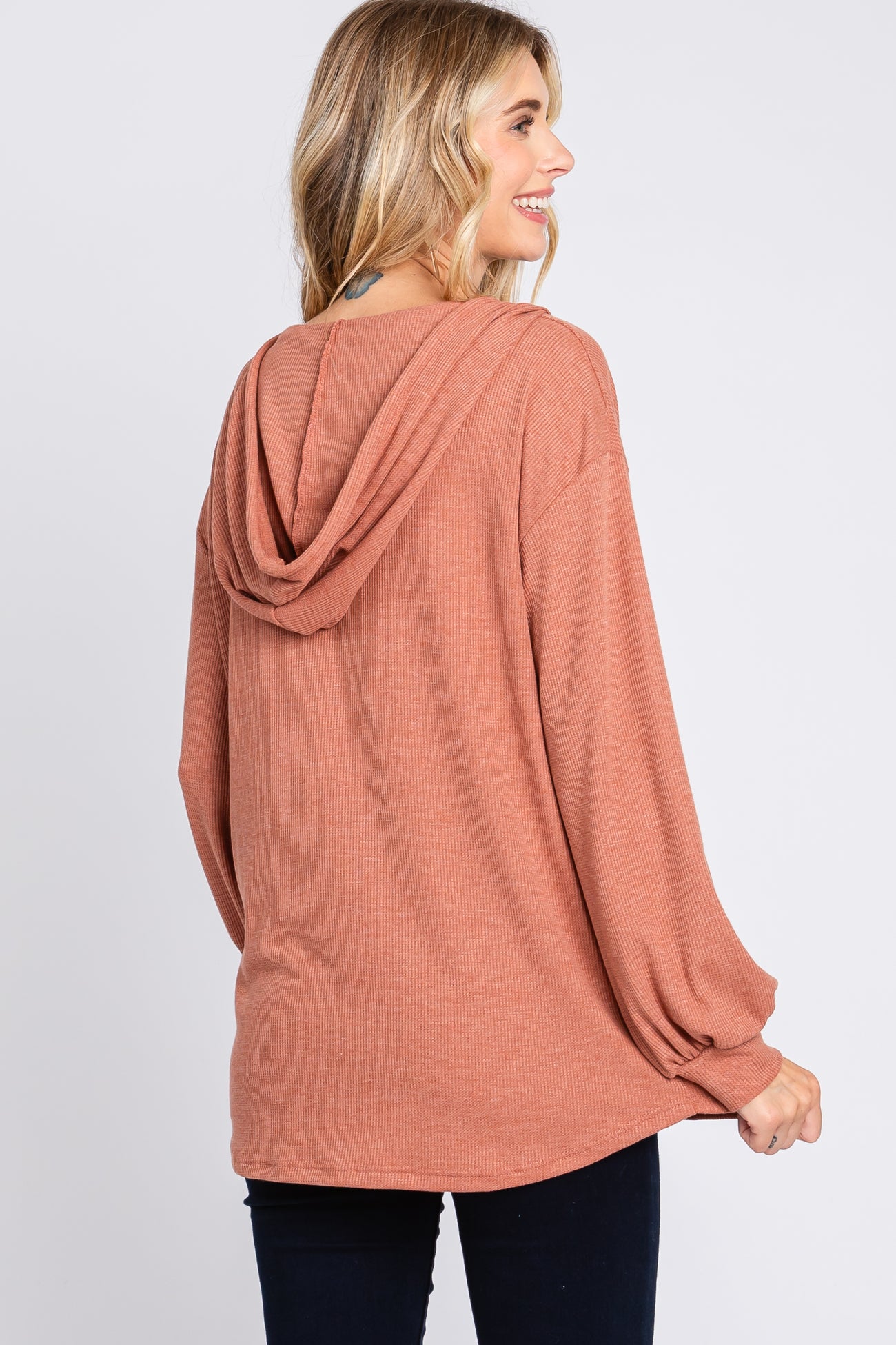 Rust Button Accent Hooded Henley Top