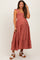 Rust Button Front Ruffle Square Neck Maternity Midi Dress