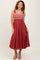 Embrace effortless style with our Rust Embroidered Sleeveless Midi Dress. Featuring intricate white geometric embroidery across the square neckline and bodice, this dress adds a unique touch to your wardrobe. The lightweight, flowy fabric creates a comfortable, flattering silhouette, perfect for warm days or layered looks. Wide straps offer support while enhancing the dress’s clean lines. Midi length makes it ideal for both casual outings and special occasions. Pair with ankle boots or sandals to complete your look. Elevate your everyday elegance with this versatile and charming dress!